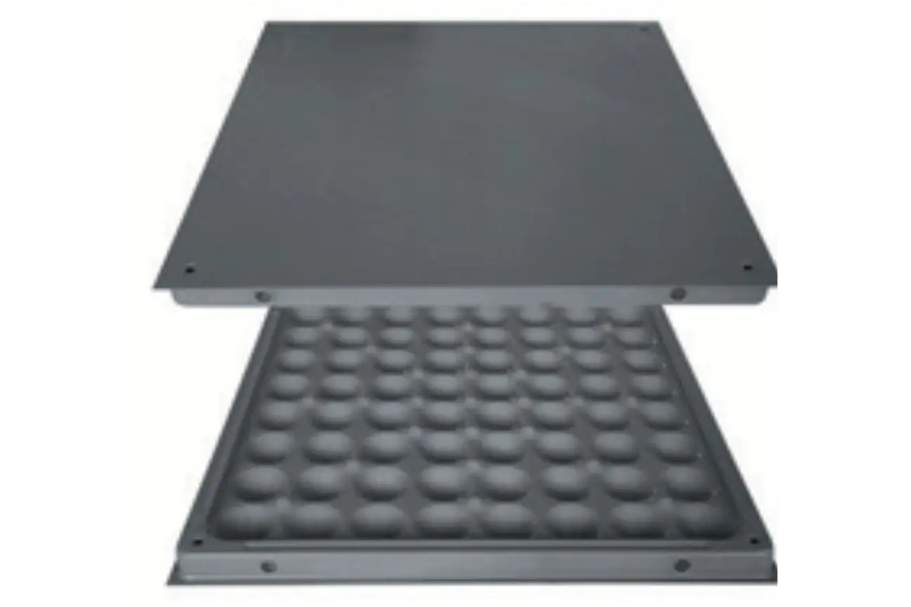 All steel components, four independent support structures, base steel plate use tensile plate, surface hard steel sheet (SPCC), floor surface through conductive epoxy processing. Surface can be covered with square carpets/PVC carpets or tiles.